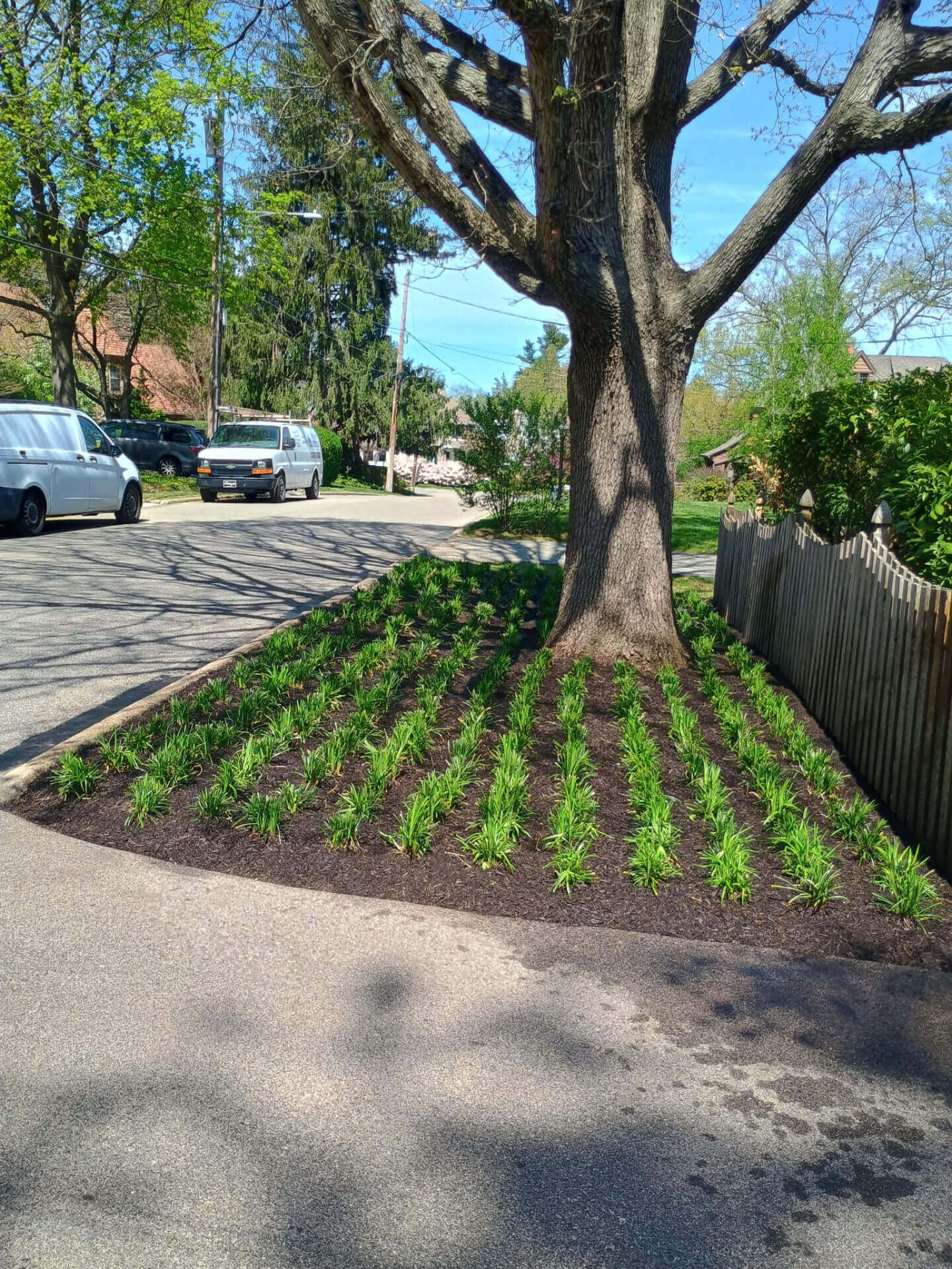 Spring cleanup prepares your landscape for the growing season by removing debris, clearing beds, and refreshing mulch. New mulch helps retain moisture, regulate soil temperature, and give planting areas a clean, finished appearance.